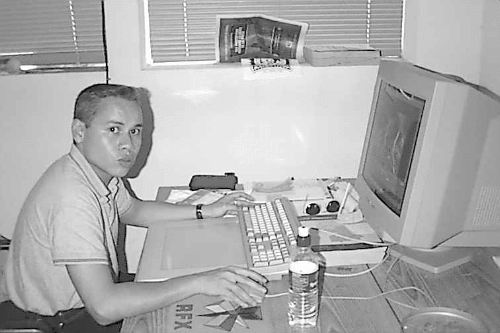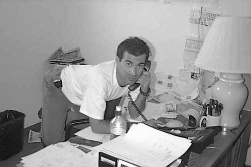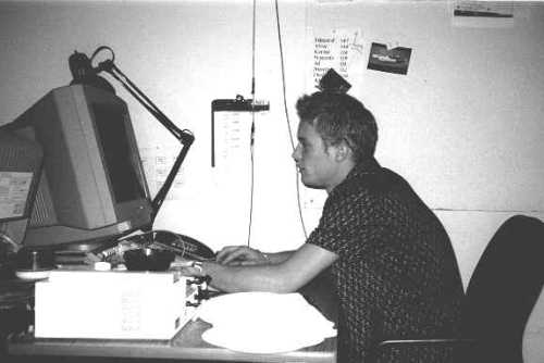 Alex, ici, est en train de poser pour la photo. Car on voit bien grace aux cernes qu'il a sous les yeux, que dans son état, il est totalement impossible de travailler. Il aussi dificile de voir que la majorité des papiers qui trainent sur son bureau, sont en fait des flyers pour de mutiples soirées (passées ou à venir)