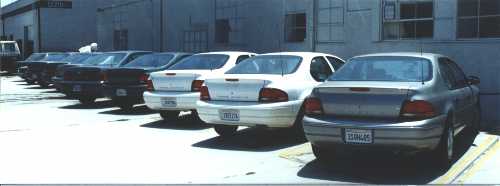 Voici les bolides que nous avions à notre disposition. D'ici, elles ont l'air propre, mais c'est une illusion. Sur le parking de Nebraska, on reconnaissait les voiture des francais à l'épaisseur de la crasse recouvrant la carrosserie.