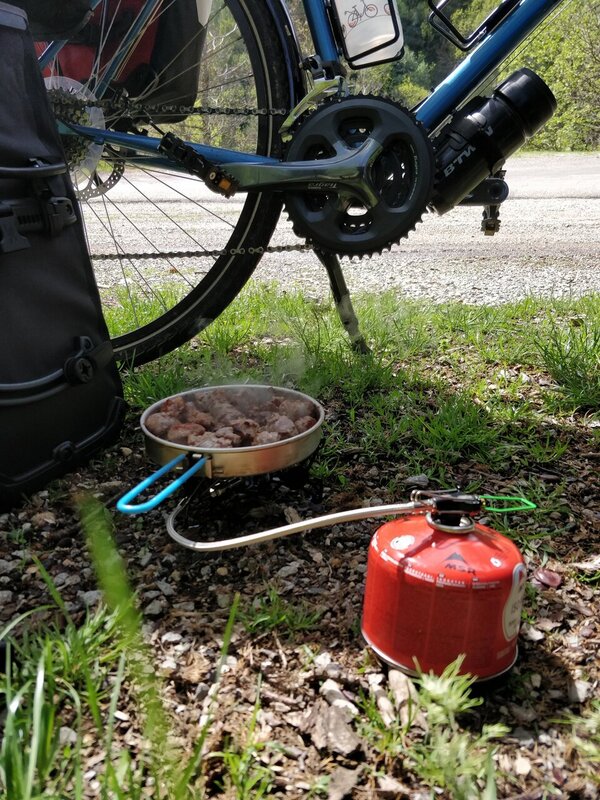 Je modère mon allure. Ça descend grave, j'essaie de ne pas dépasser les 50km/h. Je sens le cadre qui travaille sur les bosses et le poids des bagages.