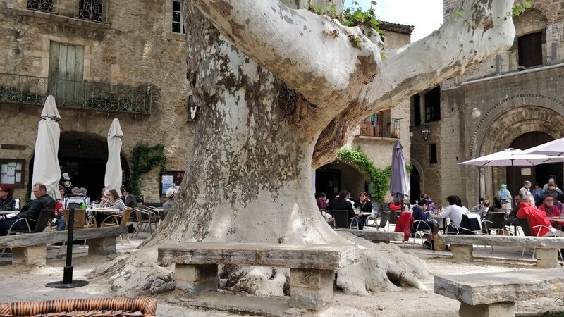Il est l'heure du dej, je me pose sur la place centrale devant un platane encore plus énorme que ceux de St Jean de Buèges.