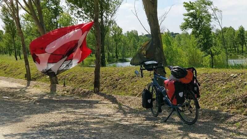Je m'arrête pour faire sécher la tente.