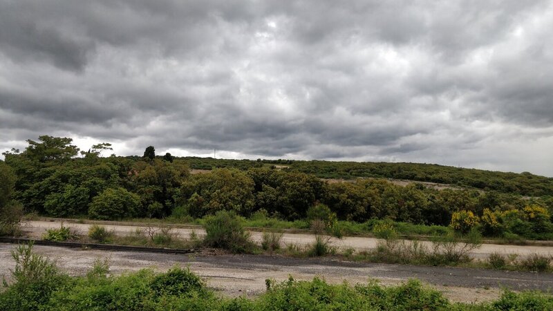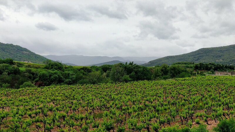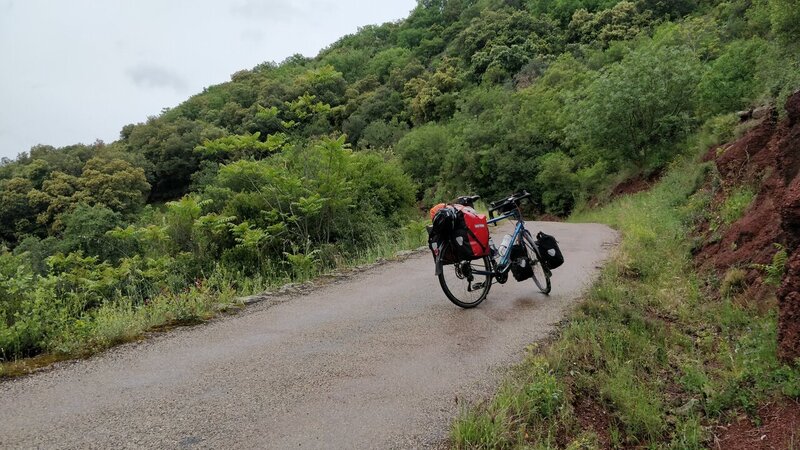Il pleut, vent de face qui vient de l'ouest. Ça monte vers Gignac.