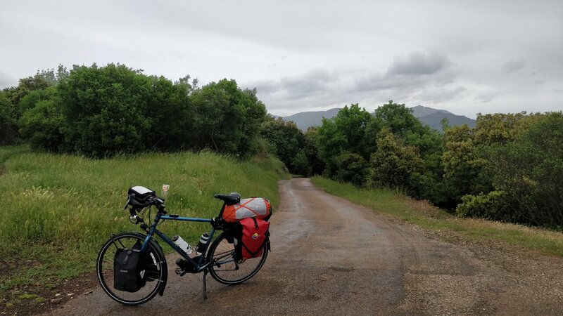 La route n'est pas très belle, je suis bien équipé, il pleuviote, il fais 13°.
