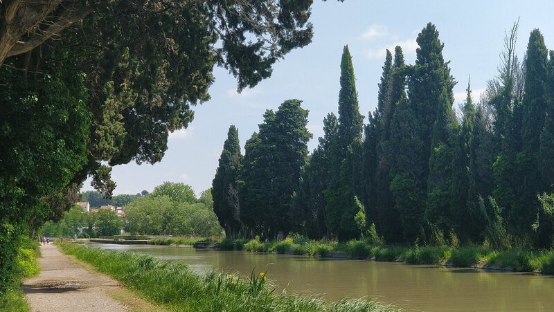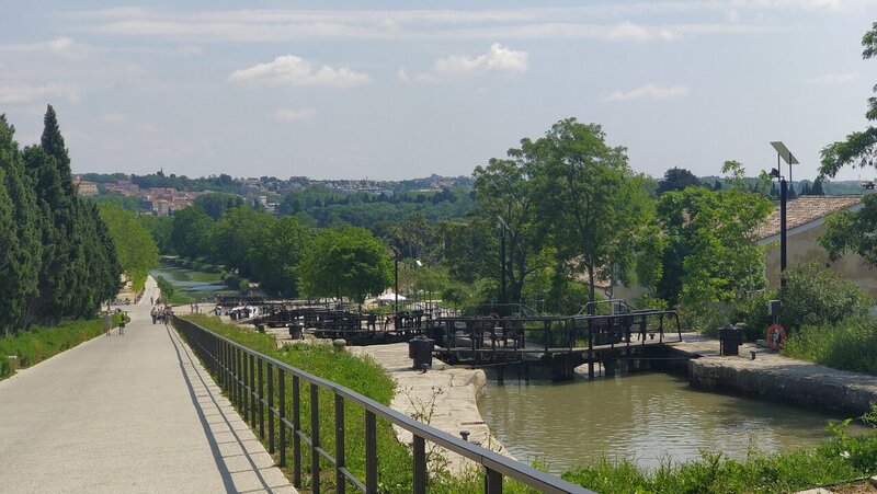 Je longe le canal jusqu'aux neuf écluses de Fonsérane, le chemin est tranquille. Je croise pas mal de cyclistes.