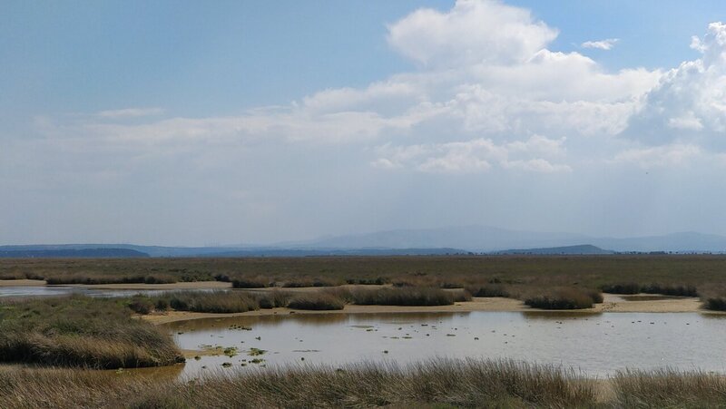 Arrivé au camping de Gruissan, il est petit, entouré de routes, et ce soir il y a un festival. Je manque de sommeil. Cet endroit n'est pas propice à mon repos... 🔊 Je file plus loin, vers Narbonne par la départementale 32. Elle traverse de magnifiques paysages. J'y revois des flamands roses.