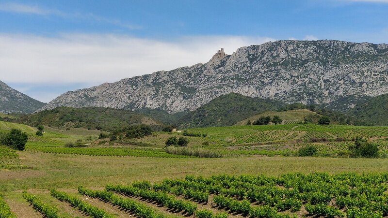 Après je prend la route des mas. Elle est riquiqui, et complètement déserte. C'est valloné, les Corbières à droite des montagnes à gauche et au milieu des vignes. C'est très beau et préservé. Tranquille.