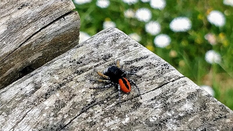 Il y a des tables de picnic, j'en profite pour me faire mon frichti. Une visiteuse est à priori intéressée par mon déjeuner.