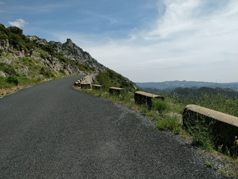 1er petit col pour aller à Vingrau, le paysage est extra, pendant la monté je me fais dépasser par des cyclistes qui font un petit tour. Ils viennent de haute Savoie. Se sont posés dans la plaine et chaque jour ils font une balade différentes.