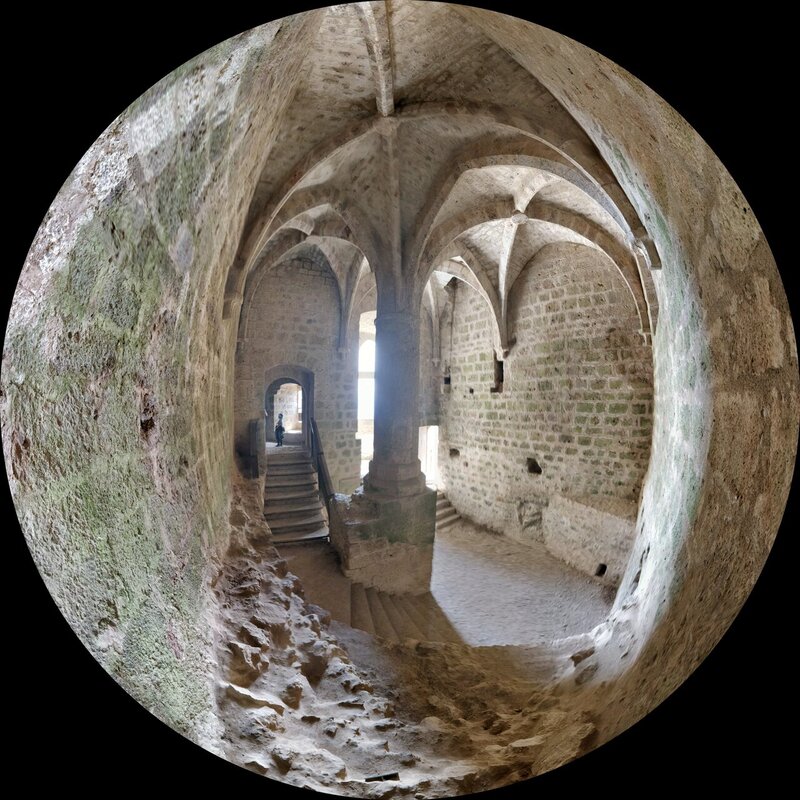 Il y a au centre de l'unique salle du donjon une grande colonne et un plafond gothique. Ça contraste pas mal avec la rudesse des lieux.