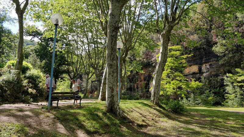 Je me suis posé sur la place du village de Rennes les bains. Et j'ai observé. Beaucoup de voyageurs, avec des gros chiens qui font flipper. (Les chiens pas les voyageurs).