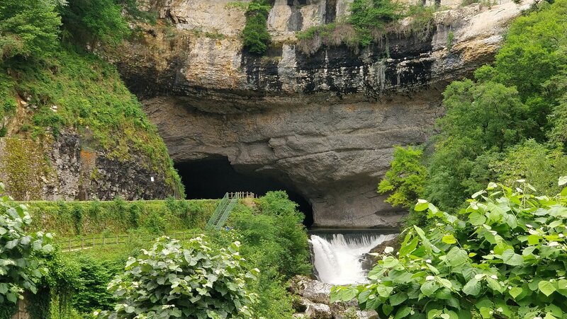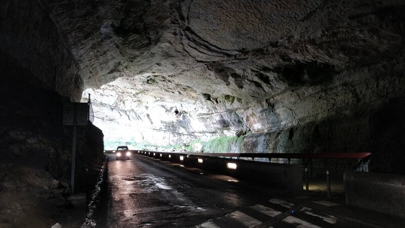 Arrivé à la grotte du Mas-d'Azil, la route rentre directement dans la grotte. 😲 C'est un long tunnel naturel qui traverse la montagne.