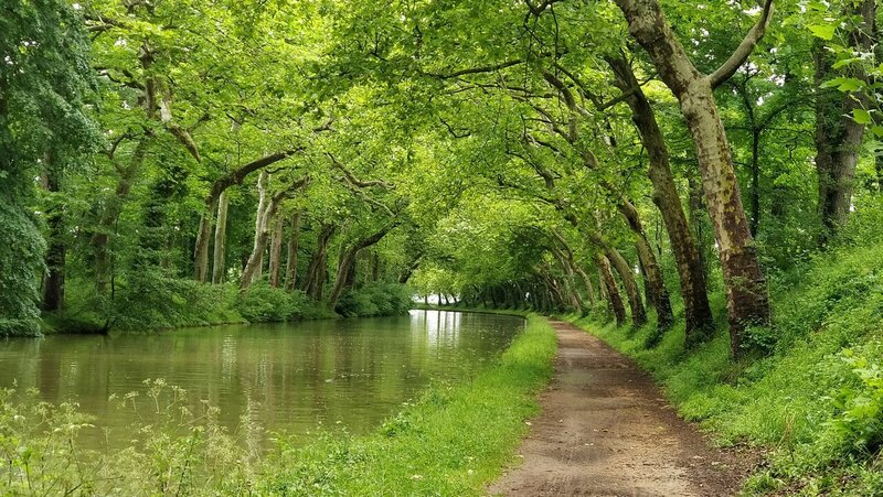 Un peu plus et je restais sans voir le canal du midi à vélo. 60 km de canal jusqu'à Toulouse. Il a plu un peu. Ça vaut vraiment le coup. Même si c'est plat c'est beaucoup moins ennuyeux que les voix verte de chemin de fer recyclé.